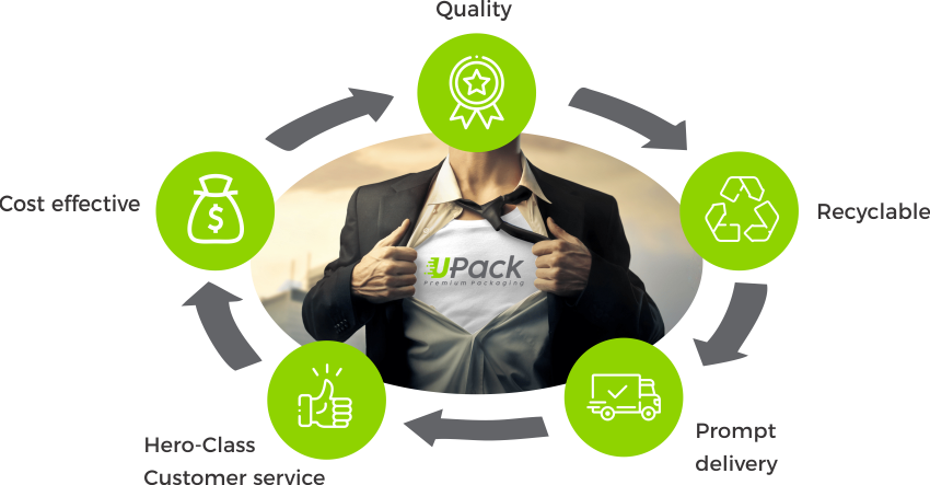 U-Pack’s objective is to become the preferred supplier for our clients, providing quality, cost-effective, recyclable products, with prompt delivery and excellent service to our customers .